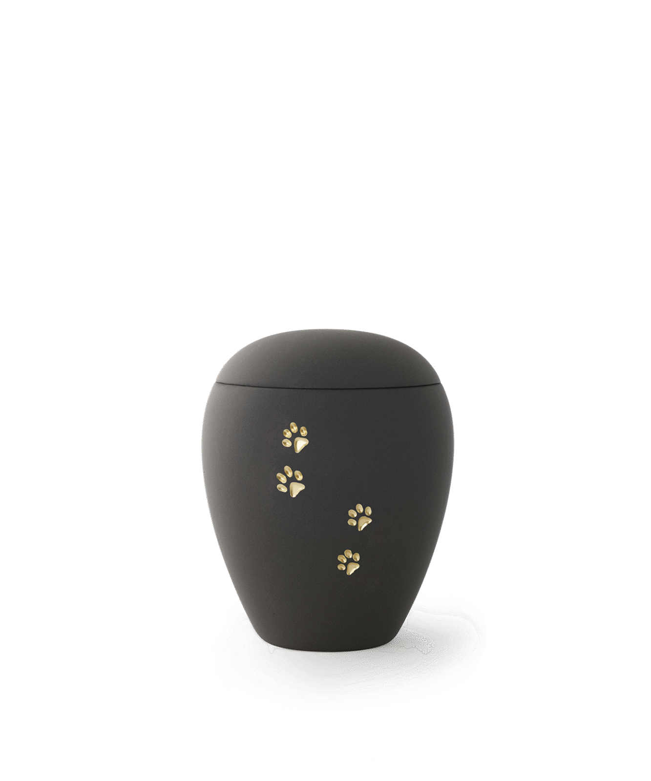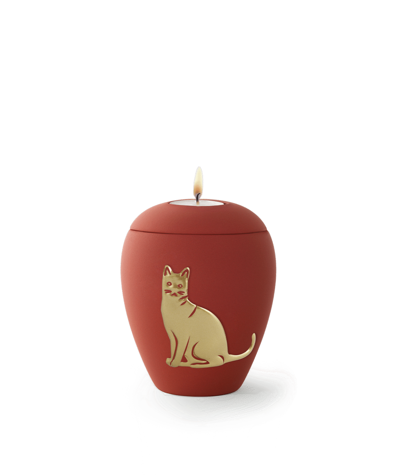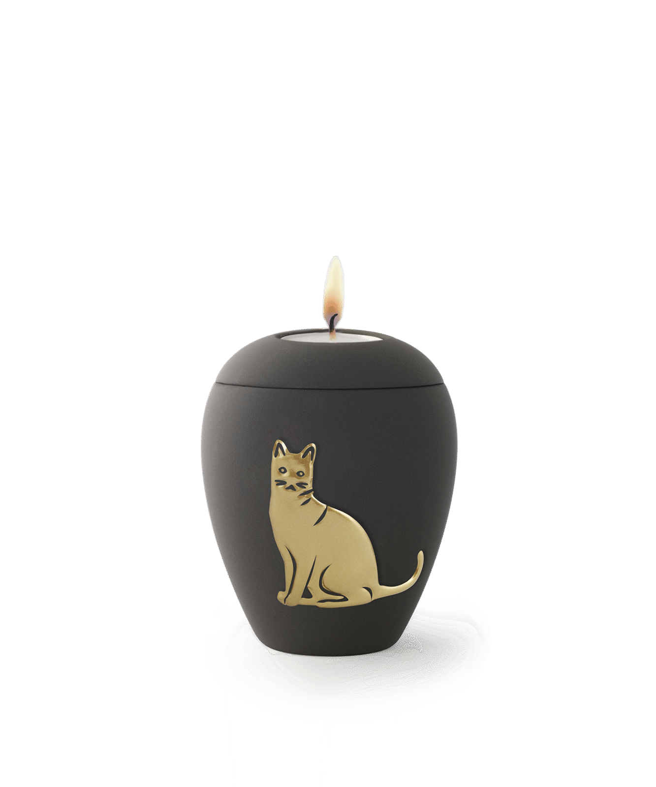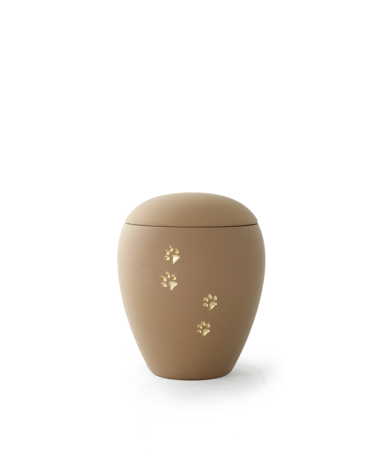Optional sind Ausführungen mit handgemalten goldenen Pfoten oder einem vergoldeten Katzenmotiv erhältlich, die liebevoll an treue Wegbegleiter erinnern.