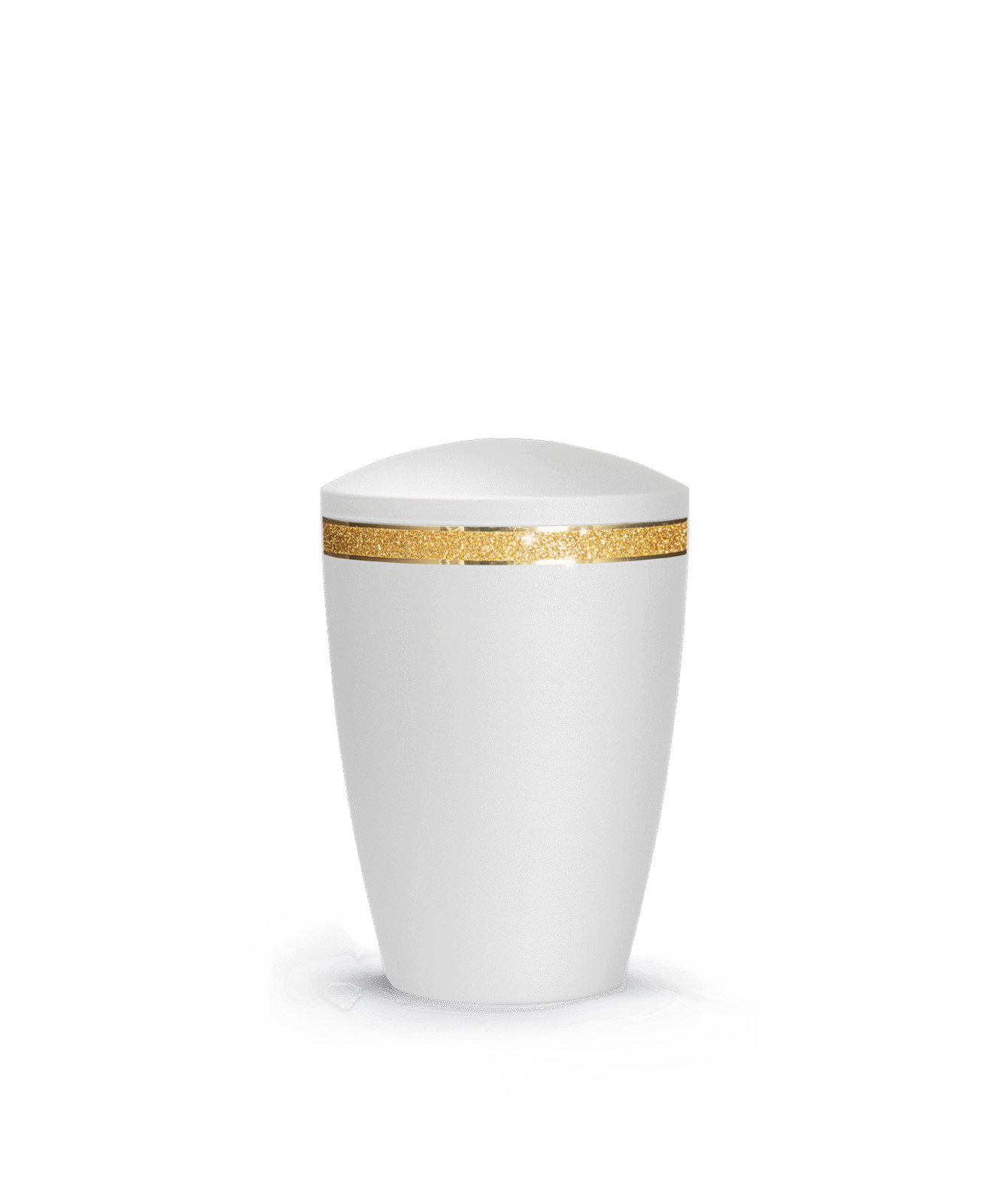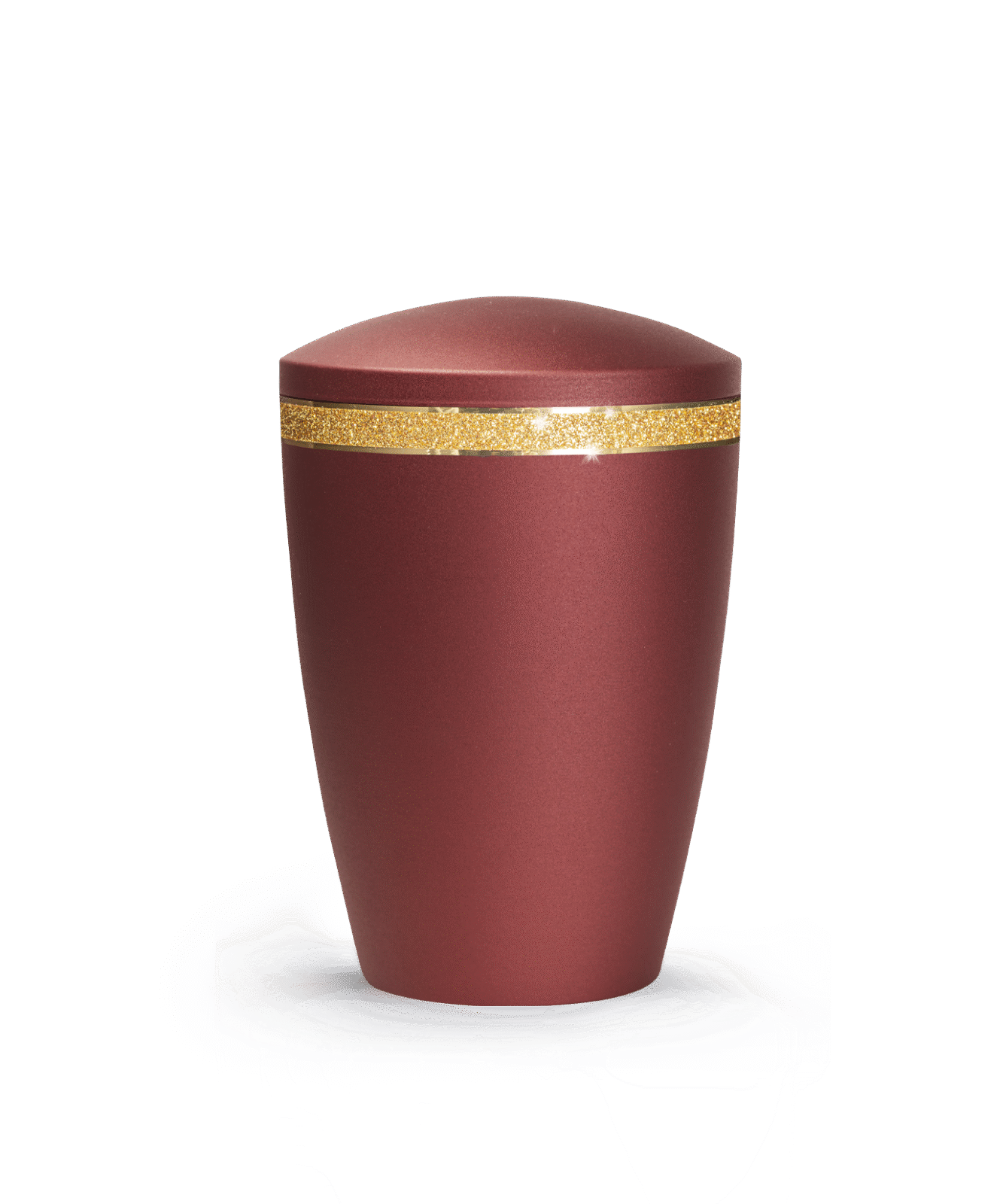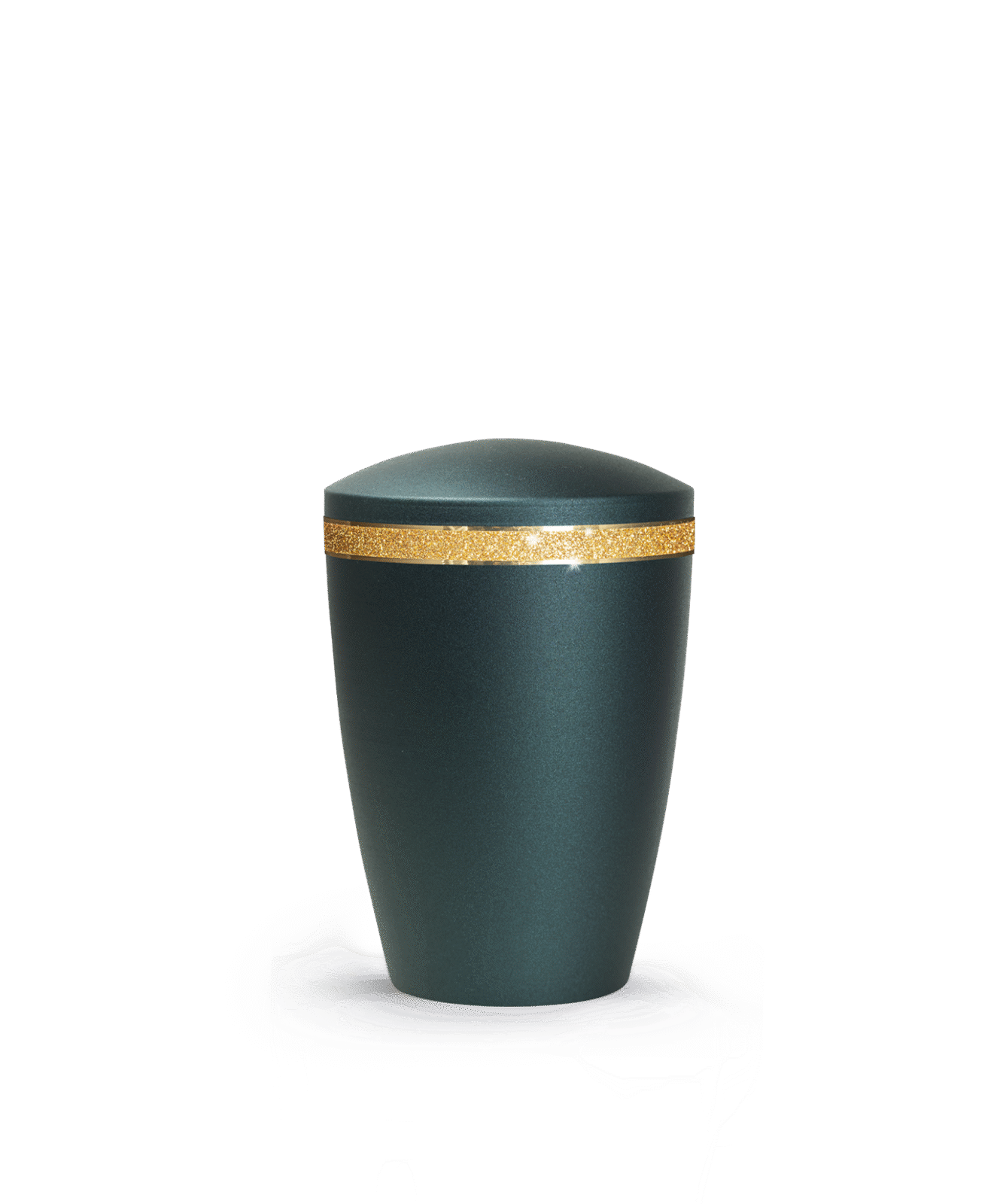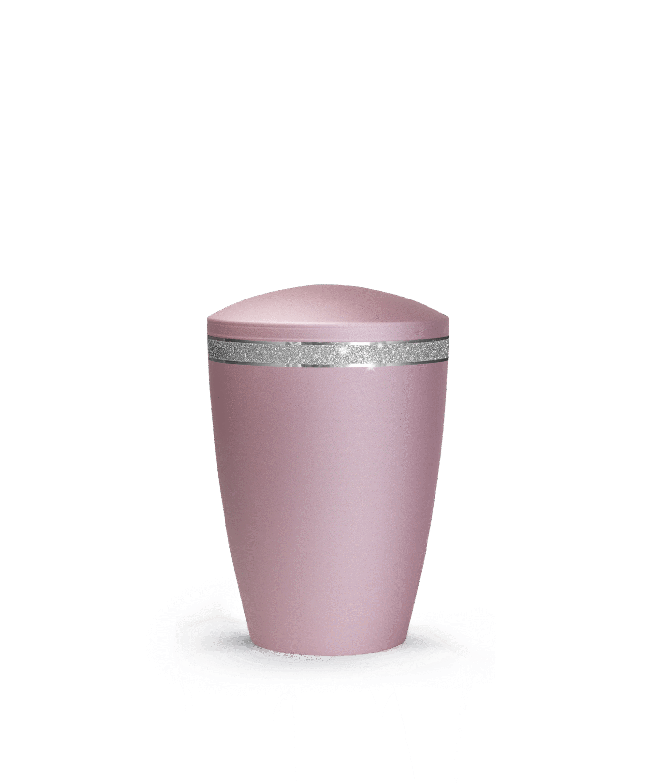 Die Metallurnen der Edition Glamour verbinden modernen Stil mit klassischer Anmut und schaffen dadurch eine harmonische Balance zwischen Eleganz und Gefühl. Ihr sanft matt schimmerndes Finish verleiht ihnen eine ruhige und edle Ausstrahlung, die Würde, Stil und Wärme vereint. Der umlaufende Zierstreifen aus feinem Gold- oder Silberglitter bildet einen klaren Kontrast zur Oberfläche und fängt das Licht auf dezente, aber wirkungsvolle Weise ein. So entsteht ein feines Funkeln, das die Urne zu einem edlen Blickfang macht und ihr dennoch eine ruhige, unaufdringliche Wirkung lässt.