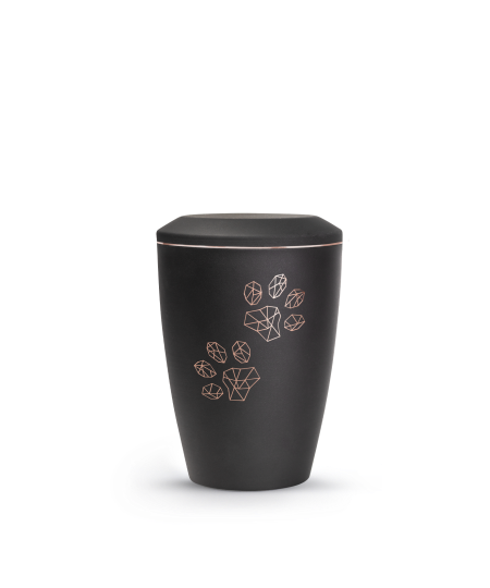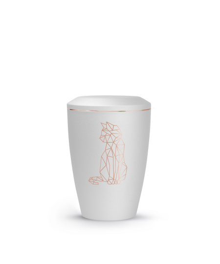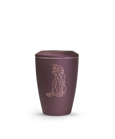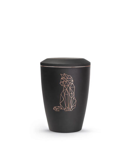 Jede Urne dieser Serie wird mit großer Sorgfalt gefertigt und überzeugt durch ihre feine Verarbeitung. Die Oberfläche schimmert je nach Lichteinfall unterschiedlich intensiv, wodurch sie Tiefe und Lebendigkeit erhält. Das Kupfermotiv zeigt wahlweise eine stilisierte Katze oder einen geometrischen Pfotenabdruck, der den Charakter des geliebten Tieres auf edle Weise widerspiegelt. Das Zusammenspiel aus mattem Metall und warmem Kupfer verleiht jeder Urne eine besondere, harmonische Wirkung.